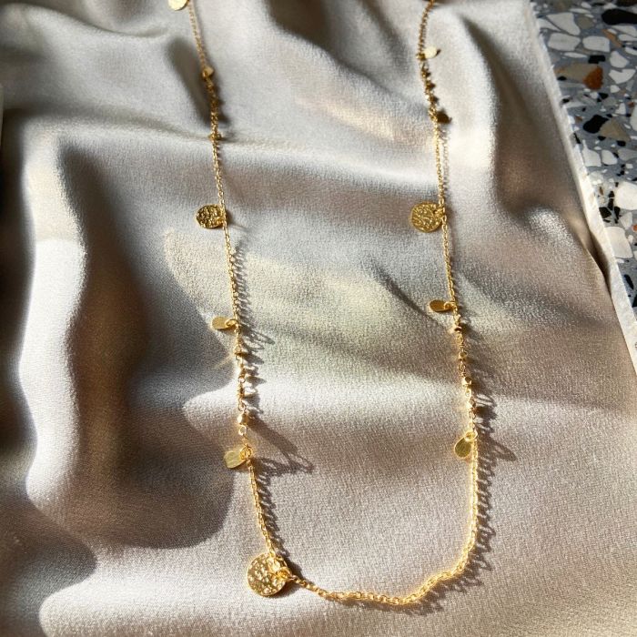 Long boho necklace perfect for layering. Silver and Gold